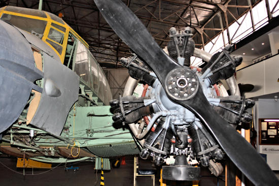 ![]() Avro Anson EF 954 stripped down radial engine with propeller |